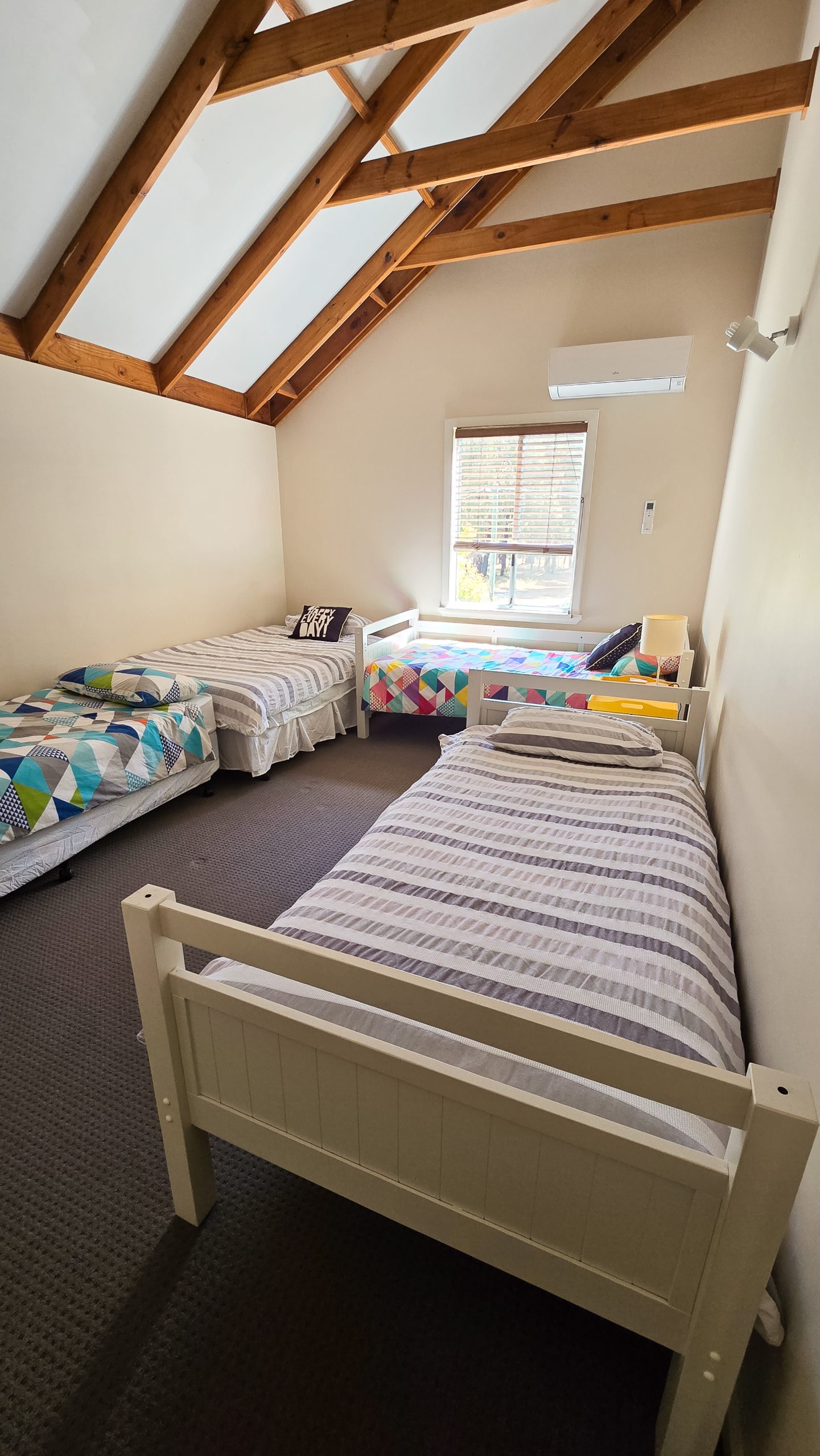 - 3 comfortable bedrooms with 1 double, 1 queen and 4 singles. Sleep 8.